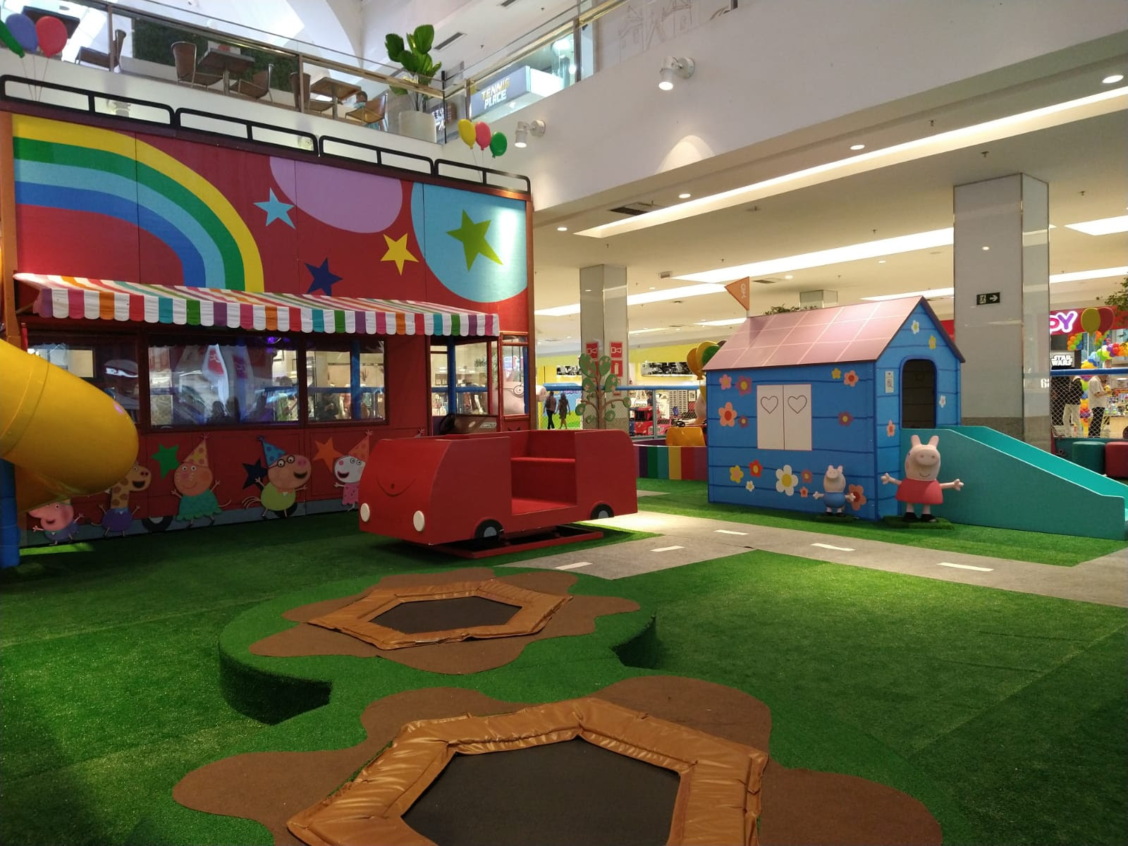 O parque temático está repleto de atrações envolventes, criando um ambiente mágico e interativo para as crianças. Os visitantes poderão explorar a famosa Casa da Peppa, dar um passeio emocionante no carro do Papai Pig, e pular sem parar no divertido pula-pula de poça de lama. Além disso, as crianças poderão brincar na encantadora casinha de brinquedos da Peppa, participar de uma animada festa dentro do ônibus da turma e deslizar no superdivertido tobogã.