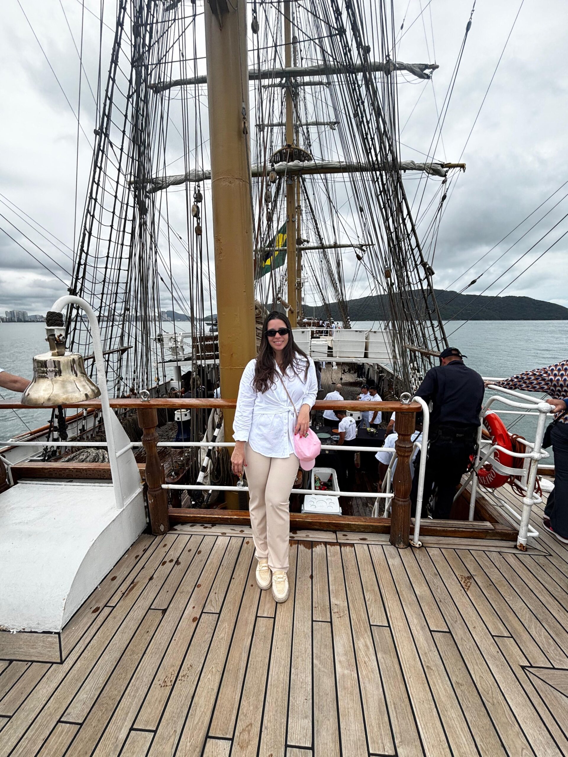 Ela também participou da subida ao mastro, experiência reservada aos mais destemidos a bordo. “Foi um desafio e tanto, mas a vista do alto é impressionante e compensa qualquer sacrifício. Foram três dias de momentos únicos — ainda mais para uma amante do mar como eu”, conta.