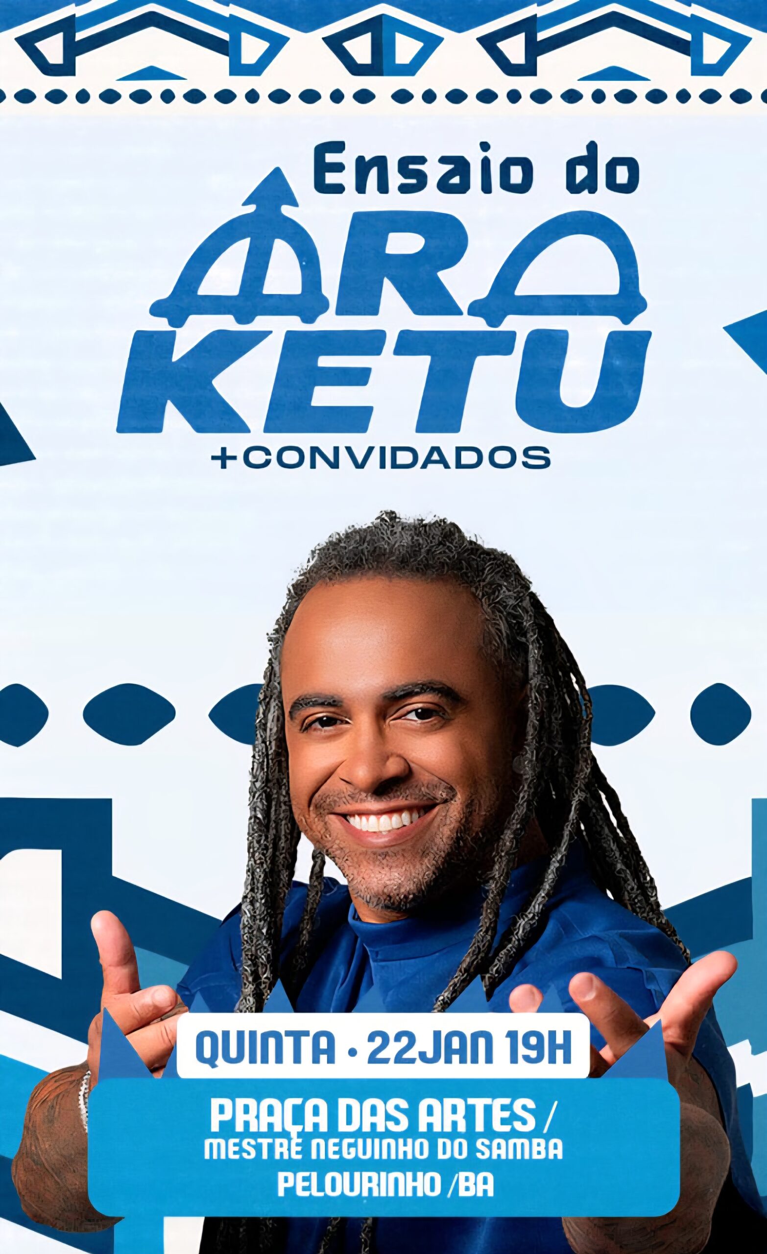 O Pelourinho vai ferver ao som do samba-reggae, do axé e da energia ancestral na quinta-feira, 22 de janeiro, com a realização do Ensaio do Ara Ketu e Convidados, a partir das 19h, na Praça das Artes Mestre Neguinho do Samba, no coração do Centro Histórico de Salvador.