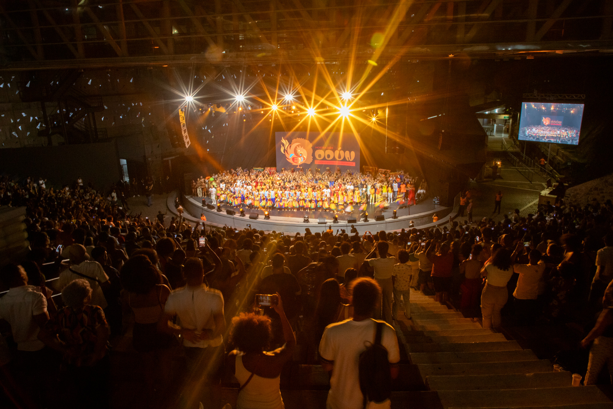A mostra se encerra em festa: rito, alegria, xirê e tradição. A celebração se afirma como ato político de permanência e como força que alimenta a dança, a música e a arte que vibram do chão ao céu.