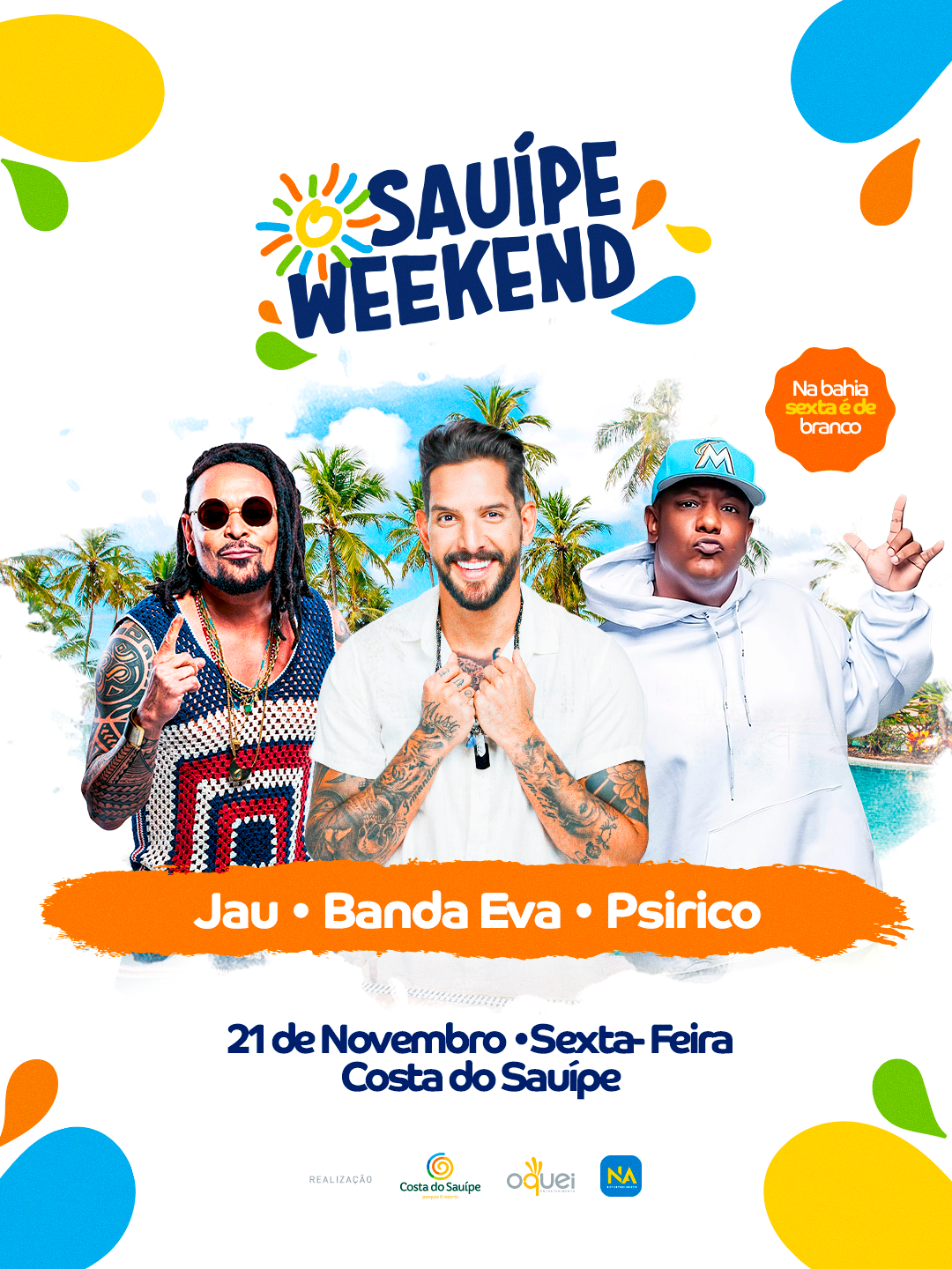 Realizado pela Oquei Entretenimento, NA Entretenimento e Costa do Sauípe, o Sauípe Weekend 2025 acontece de 20 a 22 de novembro, reunindo alguns dos maiores artistas da Bahia em três dias de festa. Em meio a um dos destinos mais paradisíacos e desejados do país, o evento celebra os 40 anos da Axé Music com uma programação que combina shows em palco, desfiles de pranchão e toda a infraestrutura do complexo. Mais do que um festival, é uma experiência imersiva, marcada por sol, mar, alegria e pela atmosfera única que reafirma a vocação da Bahia para a música e para o entretenimento, consolidando o Sauípe Weekend como uma das experiências mais aguardadas do calendário nacional.