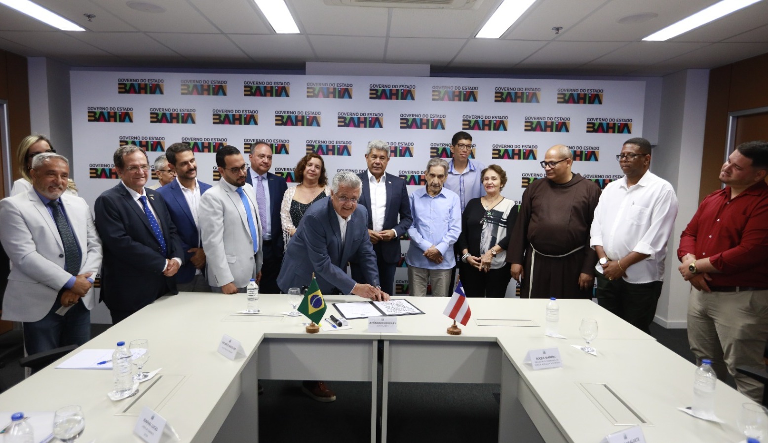O Governo do Estado autorizou a execução de obras de infraestrutura turística na Ilha de Bom Jesus dos Passos, em Salvador. O investimento de R$ 195 mil será destinado à restauração da Igreja de Bom Jesus dos Passos, patrimônio histórico com quase 300 anos, que passará por reforma do telhado e pintura interna e externa. O governador Jerônimo Rodrigues assinou a ordem de serviço, nesta sexta-feira (3), durante reunião com lideranças da localidade, no Centro Administrativo da Bahia, em Salvador.