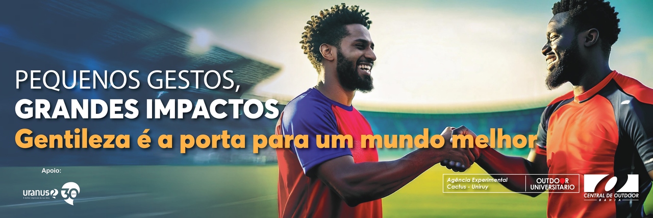 Foi a última etapa do Outdoor Universitário. Agora, os sete finalistas, de Salvador e Feira de Santana, vão se encontrar na grande final do projeto, que será realizada no final do ano. Na peça, o estúdio formado por universitários abordou o assunto gentileza utilizando o futebol como alegoria. Incluíram dois torcedores de Bahia e Vitória se cumprimentando num estádio. A frase “Pequenos gestos, grandes impactos. Gentileza é a porta para um mundo melhor” foi a escolhida.