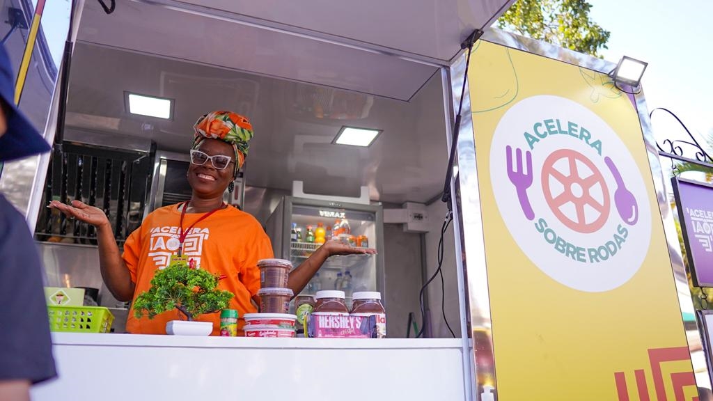 Realizado pela Fábrica Cultural e com o patrocínio do Grupo Carrefour, o projeto Acelera Iaô busca fomentar a autonomia econômica de empreendedores baianos. Além de impulsionar negócios criativos na área de alimentação, o Acelera Sobre Rodas é um equipamento de gastronomia itinerante que valoriza a culinária local, promove a inclusão social e fortalece a rede de apoio à economia criativa.