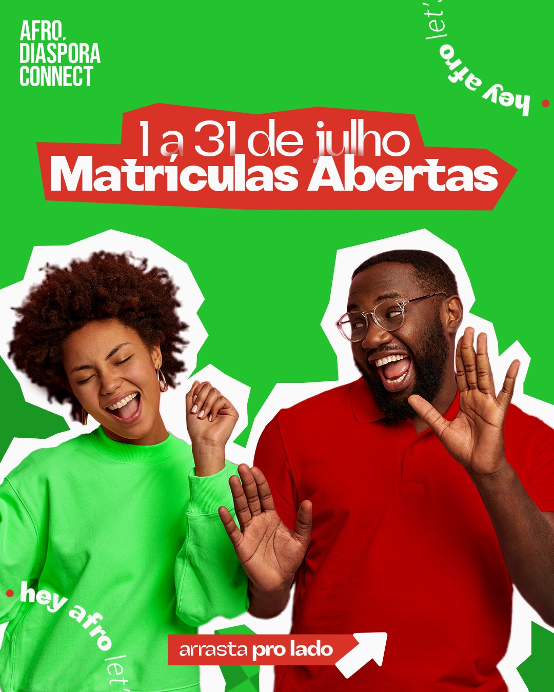 Matrículas abertas de 01 de julho a 31 de julho de 2024. Para mais informações sobre as matrículas, entre em contato conosco pelo telefone (71) 9 9966-9890 ou visite nossa página no instagram @/afrodiasporaconnect.