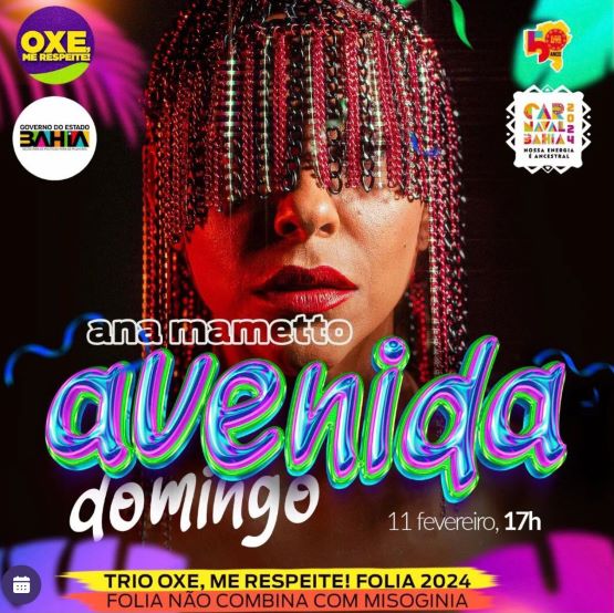Com a presença da renomada cantora Ana Mameto como atração principal, o Bloco OXe, Me Respeite!, promete agitar o público com muito música e mensagens de respeito e valorização da mulher.