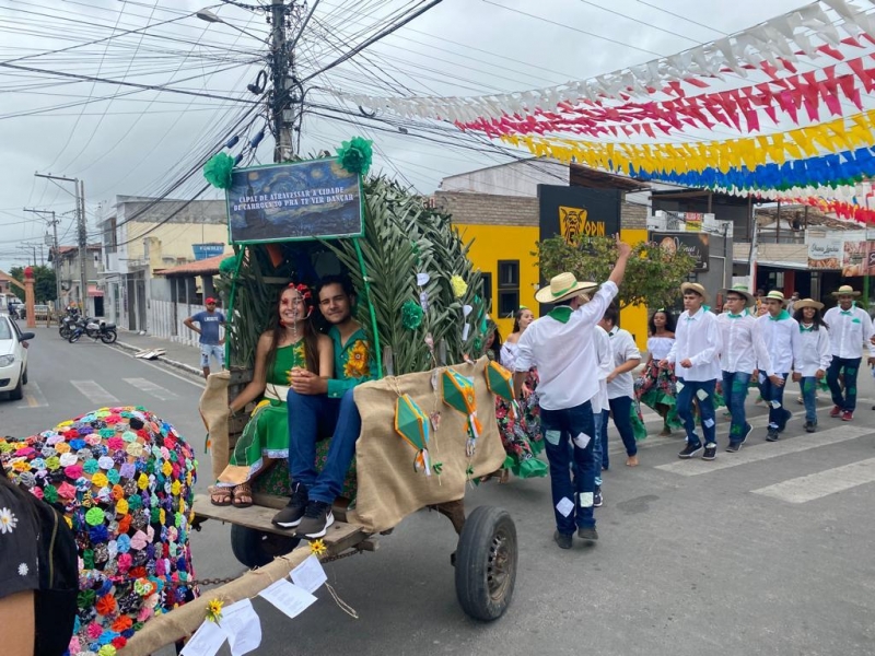 É o que ocorre no Colégio Estadual de Valente, localizado no município do mesmo nome. A comunidade escolar está preparando o desfile de carroças e a gincana cultural, que acontece nesta sexta-feira (7) e é realizado há mais de uma década, envolvendo toda a população da cidade. No período da manhã, os estudantes desfilam com seus trajes juninos, em carroças decoradas. À noite, durante a quermesse realizada na praça do centro da cidade, os alunos vão exibir nas barracas juninas os resultados das pesquisas desenvolvidas sobre culinária, personalidades e religiosidades dos festejos de junho, demonstrando engajamento com as temáticas propostas pelo Arraiá da Sustentabilidade.