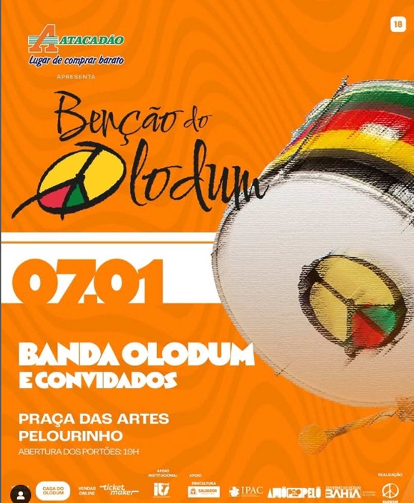 O Olodum promove, no dia 7 de janeiro, sua primeira benção do ano na Praça das Artes, no Pelourinho, com a participação especial de Jammil e Babado Novo.  O evento, que faz parte da programação dos 45 anos do grupo, abre  os portões às 19h. A programação segue em todas as terças-feiras até a última antes do Carnaval (18 de fevereiro) e conta com o patrocínio do Atacadão.