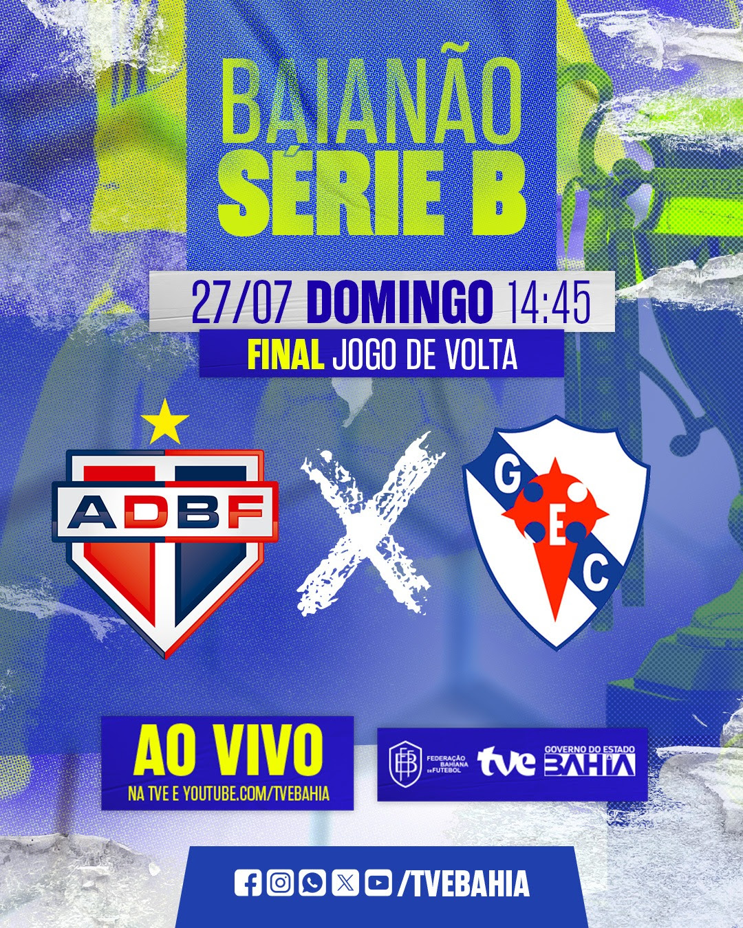 Neste domingo (27), Bahia de Feira e Galícia se enfrentam e o vencedor será o campeão da segunda divisão do Campeonato Baiano de Futebol 2025. A TVE transmite o confronto a partir das 14h45 (pré-jogo), direto da Arena Cajueiro, em Feira de Santana. A partida será transmitida pela TV aberta e também poderá ser acompanhada ao vivo pelo youtube.com/tvebahia.