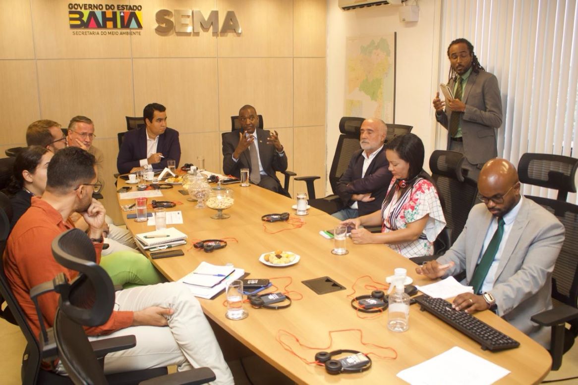 Também estiveram presentes no encontro o chefe de Gabinete da Sema, André Ferraro; o superintendente de Políticas e Planejamento Ambiental da Sema, Tiago Porto; a coordenadora de Gestão dos Fundos da Sema, Maiana Pitombo; o coordenador executivo de Ações Estratégicas, Luiz Araújo; o assessor da Sema, Pedro Tojo, e a assessora de Relações Institucionais, Elisa Portella.
