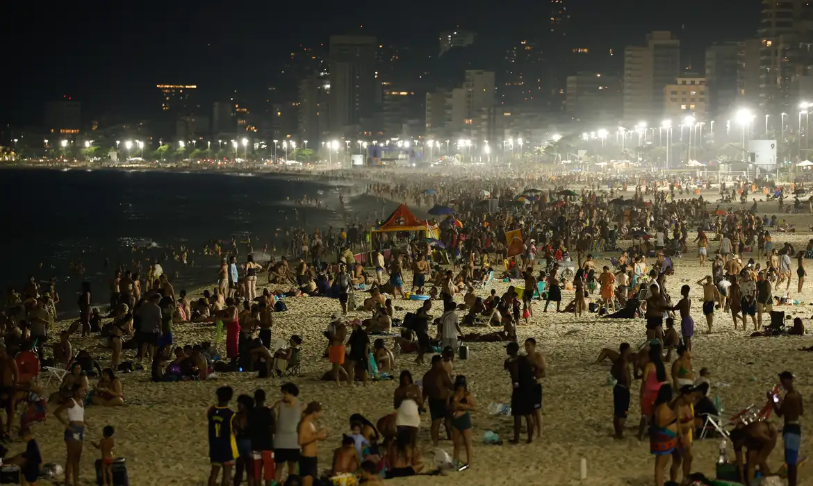O calor intenso tem levado cariocas e turistas a lotar as praias até mesmo depois que o sol se põe. Registros nas redes sociais no fim de semana e no feriado de São Sebastião (20) mostraram praias como as do Arpoador e do Recreio dos Bandeirantes lotadas de frequentadores durante a noite, e, em alguns casos, os banhistas permaneceram até mesmo durante a madrugada.