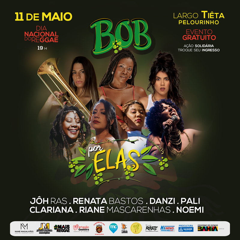 No dia 11 de maio – data em que se comemora o Dia Nacional do Reggae e marca a morte de Bob Marley, uma das maiores lendas da música popular do mundo – o Largo Tiêta, no Pelourinho, será o palco de uma grande celebração cultural e musical, a partir das 19h. Aberto ao público, o show “Bob Por Elas” busca honrar o legado do Rei do Reggae, celebrar e fortalecer a presença feminina nas artes, e promover discussões sobre justiça social através da música. Com um line-up de peso, que dá voz à grandes artistas como Clariana, Pali Trombone, Renata Bastos, Noemi, Danzi, Riane Mascarenhas e Jôh Ras, a festa destaca a diversidade e a riqueza da cena musical de Salvador, apresentando performances que prometem capturar a essência do reggae, ao mesmo tempo em que abordam temas de conscientização social e empoderamento feminino.