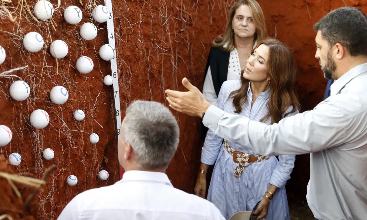 Biodiversidade, sustentabilidade e mudanças climáticas estão na agenda diplomática do Brasil e da Dinamarca. Como parte dessa parceria, a rainha da Dinamarca, Mary Donaldson, visitou nesta sexta-feira (4) a sede da Embrapa Cerrados e conheceu as tecnologias aplicadas no país para alinhar integração lavoura-pecuária e sustentabilidade. A Embrapa Cerrados é uma empresa pública e uma das unidades da Empresa Brasileira de Pesquisa Agropecuária (Embrapa).