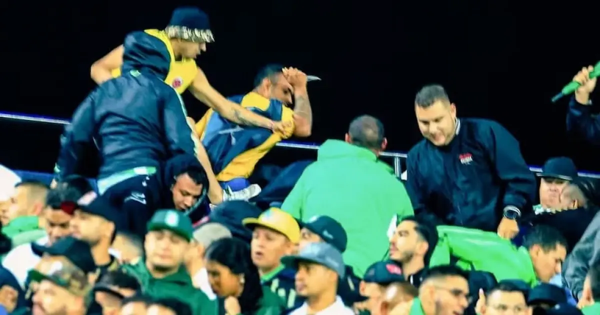 A confusão começou logo após o segundo gol do Atlético Nacional. Hinestroza foi às redes aos sete minutos do segundo tempo, e os torcedores entraram em confronto.