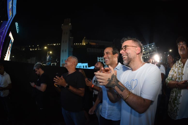 O prefeito Bruno Reis acompanhou neste sábado (6) as apresentações do espetáculo Salvador Capital Afro, na Praça Maria Felipa (Comércio), e disse que o evento, que integra as celebrações dos 475 anos da cidade, valoriza a cultura e as tradições da capital baiana. O show foi conduzido por Carlinhos Brown e Larissa Luz e contou com participações de Seu Jorge, Luedji Luna, Banda Didá e da escola de samba Viradouro.