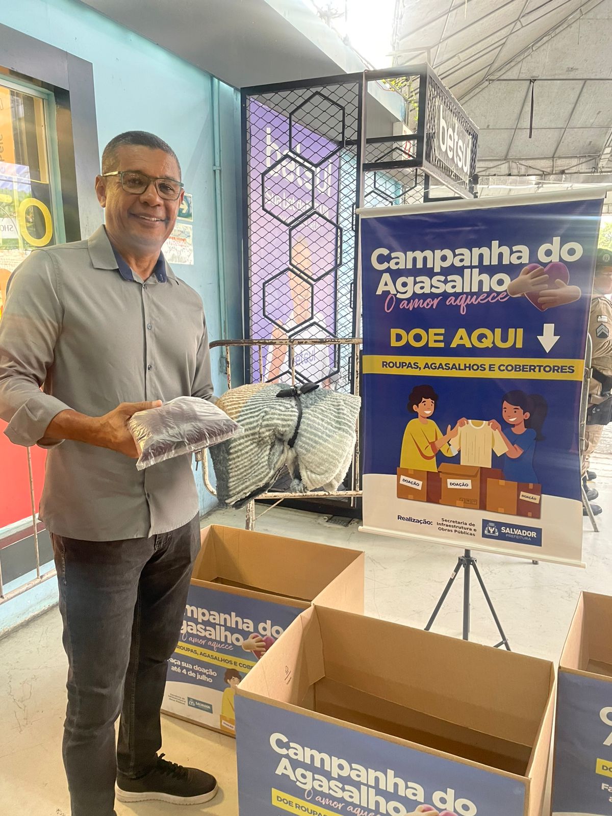 “É uma campanha muito importante. Assim como diz o cartaz aqui, ‘O amor aquece’, nós, como soteropolitanos, temos essa missão de aquecer o coração daqueles que mais necessitam. Por isso que eu vim aqui hoje trazer o meu agasalho que estava na minha casa, mas em perfeito estado”, declarou o militar da Marinha Alberto Charles, 63 anos.