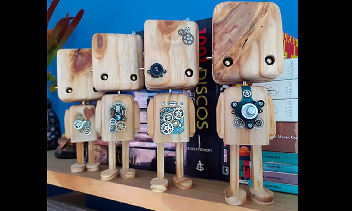 O artesão Allan Borges foi selecionado em edital e participou da Rio Artes de 2023. Ele trabalha com esculturas feitas de madeira de reaproveitamento e utiliza sucata de eletrônicos, como placas e fios, por exemplo. “O meu trabalho é todo voltado para a sustentabilidade. O material que eu uso, basicamente, coleto na rua”, disse à Agência Brasil.