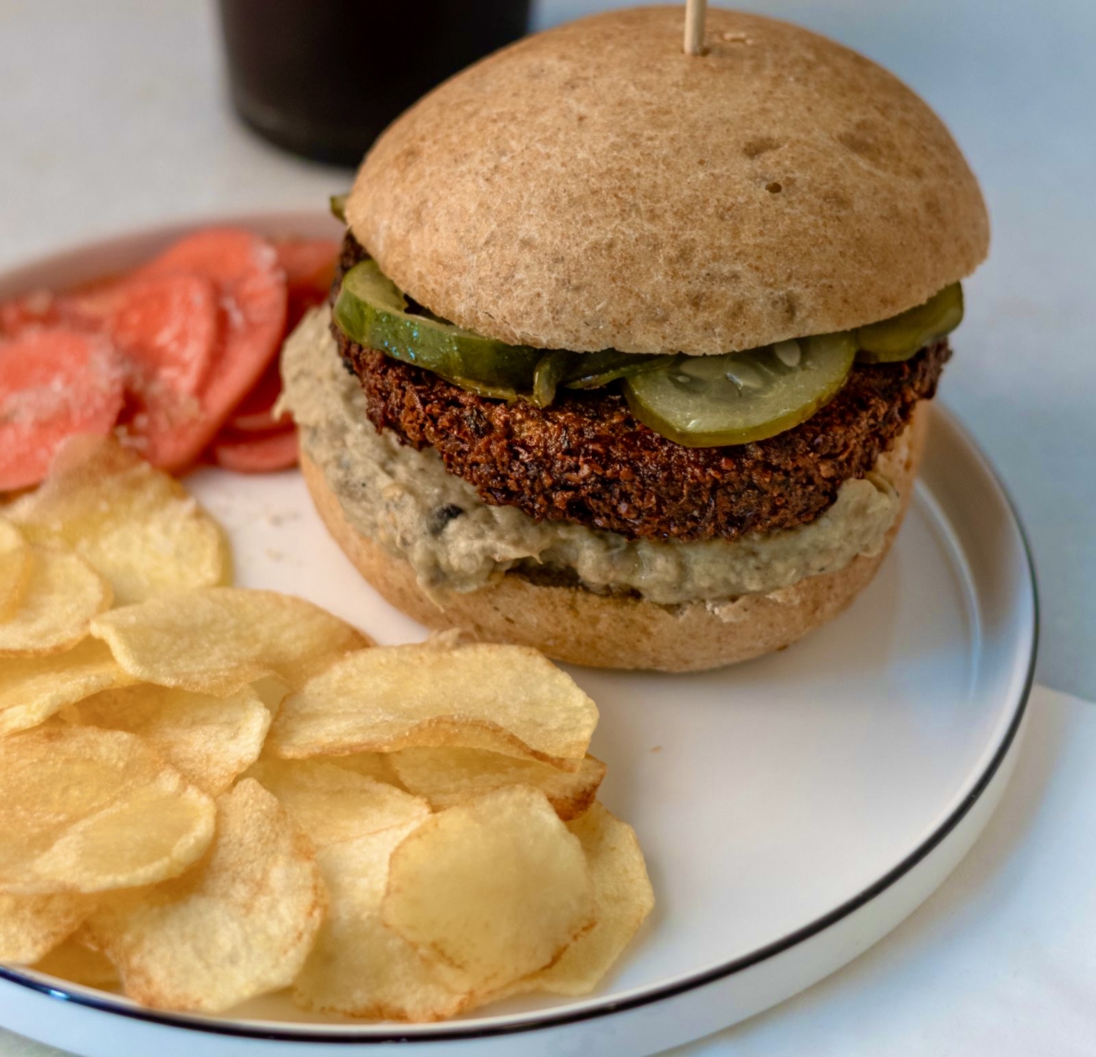 Já o Veggie Chálabi é a opção vegetariana da casa, feito com hambúrguer de falafel com babaganuj – que é uma pasta árabe de beringela com tahine (creme de gergelim) e suco de limão. Tem um sabor levemente defumado e uma textura consistente e cremosa. A receita leva ainda o molho tarator e picles de pepino, servido no pão redondo integral. Acompanha chips de batata doce, num delicioso mix de sabores por R$ 54.
