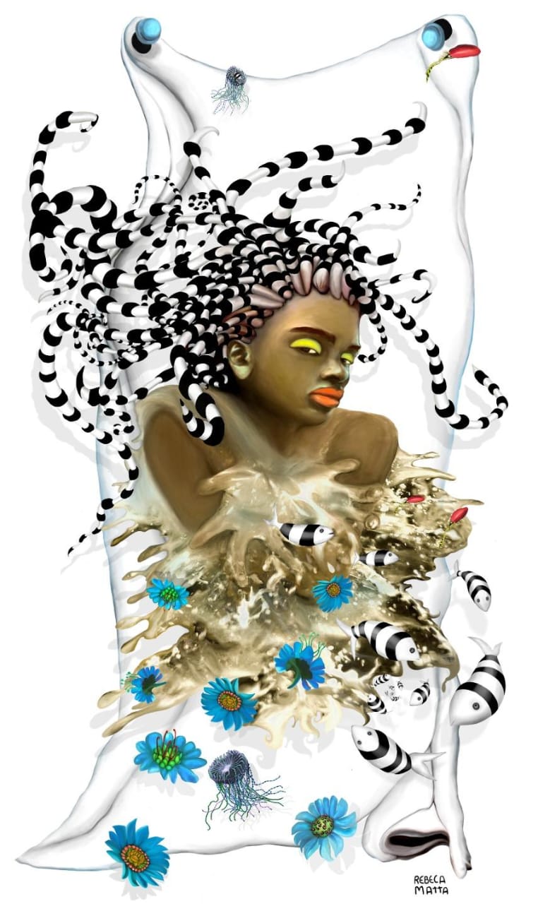 Em 2021, ela saiu do espaço virtual e mudou de casa, foi para o Festival Oferendas, para a festa do 2 de fevereiro, no Lalá Casa de Arte e ficou exposta em grande formato na parede externa da casa, até o final de 2023. Agora ela está mudando novamente. Continua sendo um presente, um desejo que conecta a gente com o Mar-Mãe, com a vida em sua potência e exuberância, com o amor da criação, todo o amor que há. Mesmo com a mudança, permanece no Rio vermelho e marca a chegada na “Casa da Mãe”, que parece ser mesmo o seu destino final.