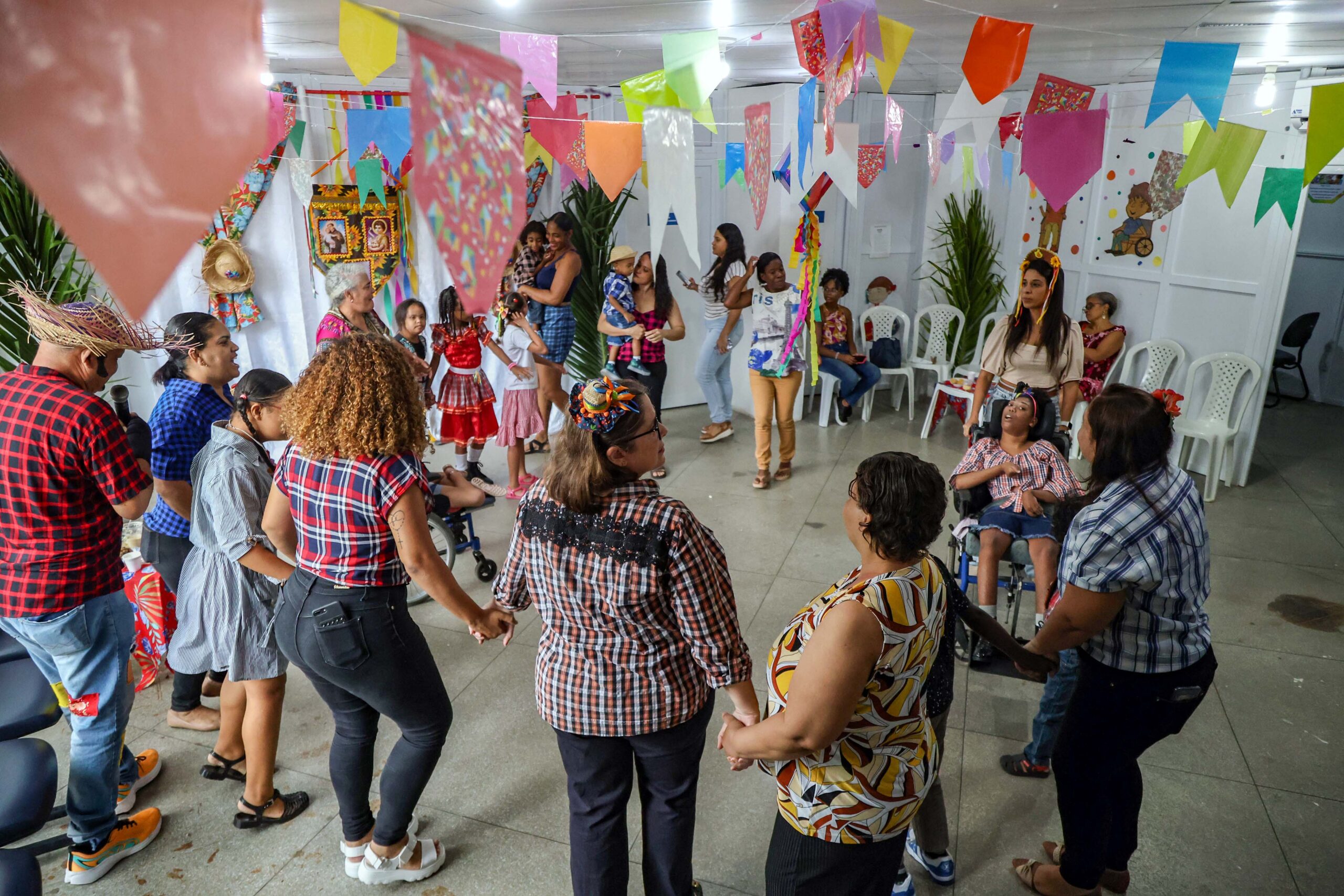 O Centro Dia de Referência, vinculado à Secretaria Municipal de Promoção Social, Combate à Pobreza, Esportes e Lazer (Sempre), promoveu na terça-feira (10) uma confraternização do São João entre a equipe e as famílias de assistidos do espaço. O equipamento municipal, localizado no Parque Bela Vista, é voltado para o atendimento de crianças com microcefalia e outras deficiências associadas e foi todo decorado para a ocasião.