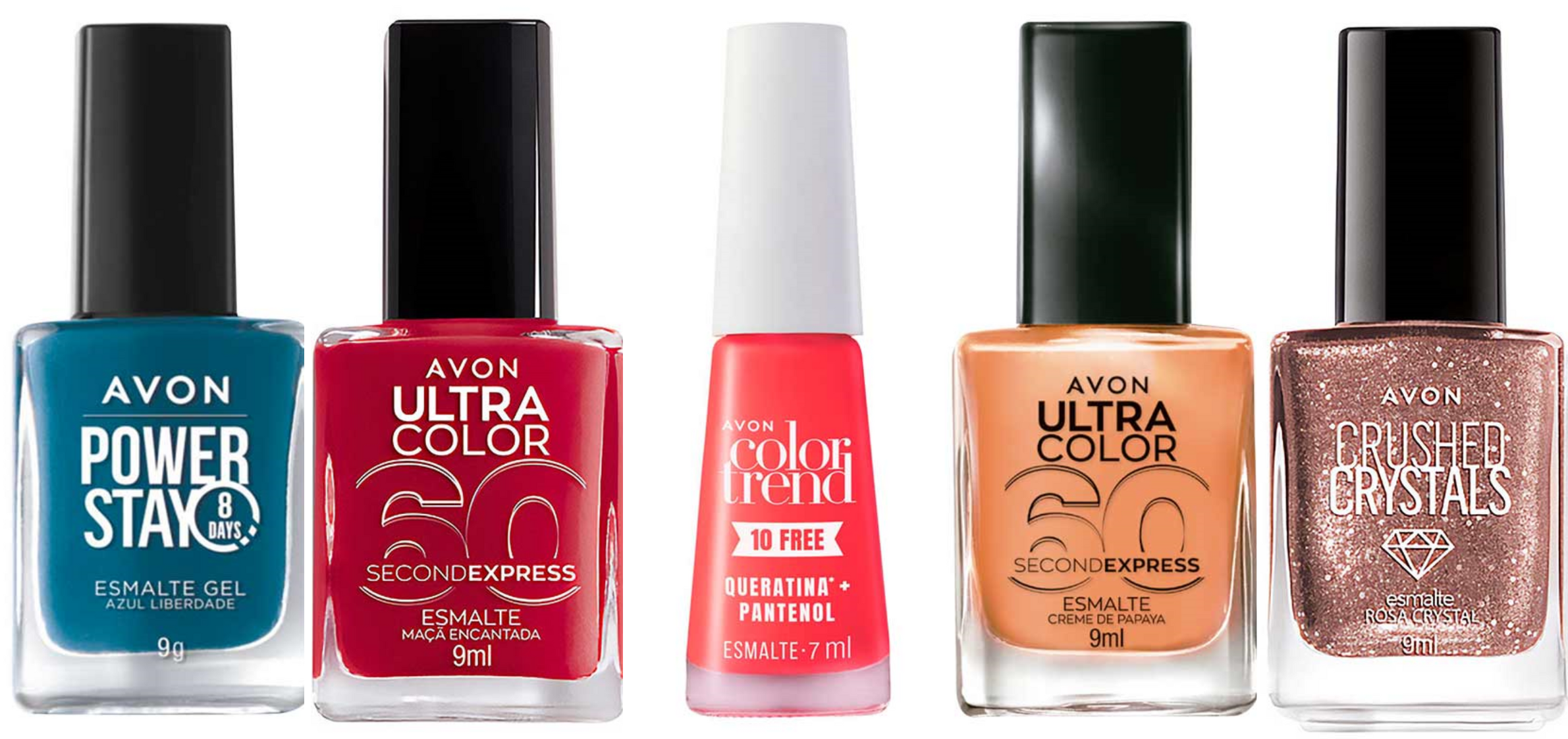 Todas as linhas de esmaltes estão disponíveis no e-commerce (https://www.avon.com.br) e na Revista da Beleza Avon, com a Consultora da Beleza mais próxima.