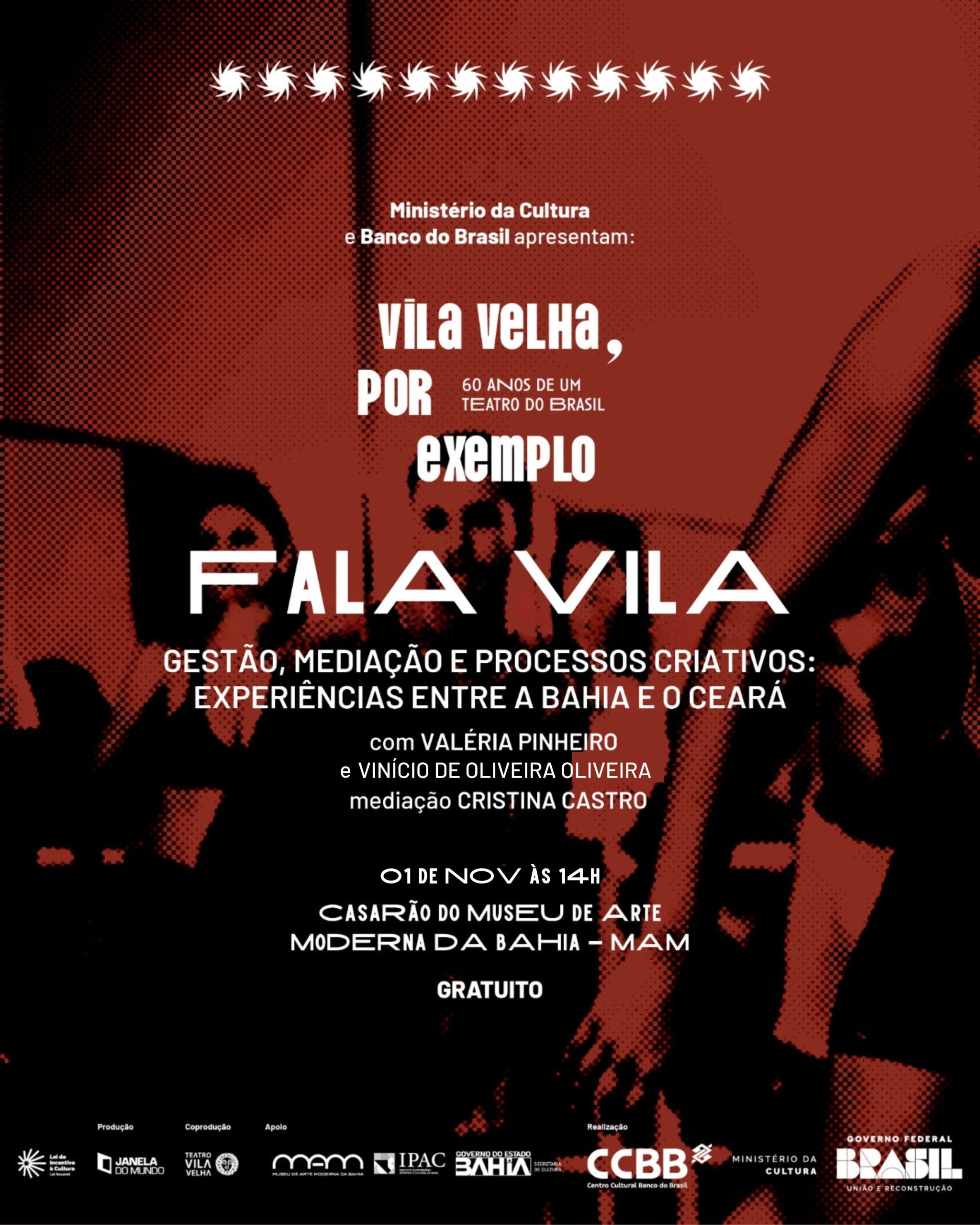 14h – FALA VILLA – Gestão, mediação e processos criativos: experiências entre a Bahia e o Ceará – mediação Cristina Castro – GRATUITO