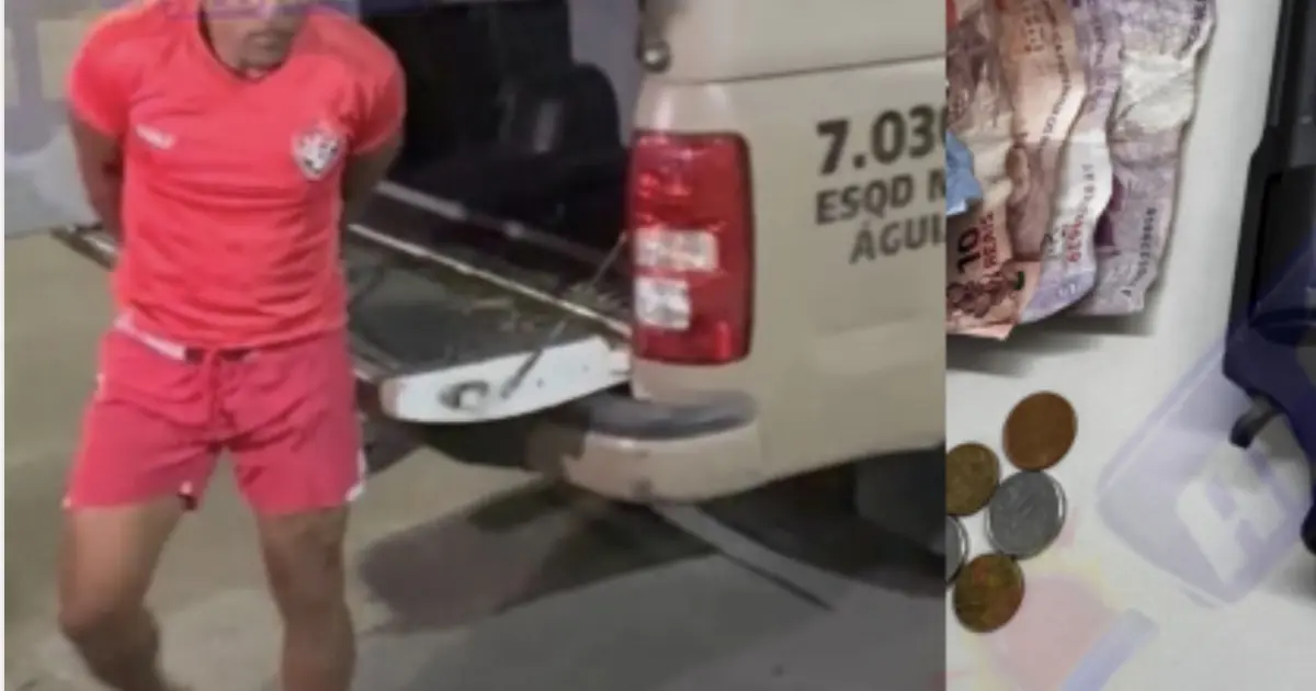 De acordo com a Polícia Militar, o suspeito demonstrou comportamento considerado suspeito e tentou fugir ao perceber a aproximação das viaturas. Na tentativa de escapar, correu e entrou em uma igreja, onde foi localizado e abordado pelos agentes.