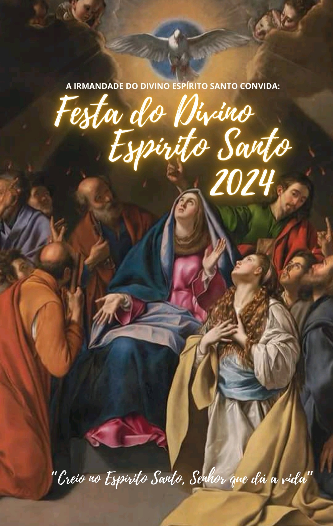 Analisando que o Espírito Santo é considerado como a Terceira Pessoa da Santíssima Trindade, e é chamado de Alma da Igreja, durante os festejos do Divino de 2024, a comunidade da Igreja do Santo Antônio Além do Carmo está medintando sobre o tema “Creio no Espírito Santo, Senhor que dá a vida” . Sendo assim, tal temática retirada da Carta Encíclica Dominum et vivificantem de S. João Paulo II, conduzirá a nossa meditação sobre a obra do Espírito Santo na nossa vida e igreja.
