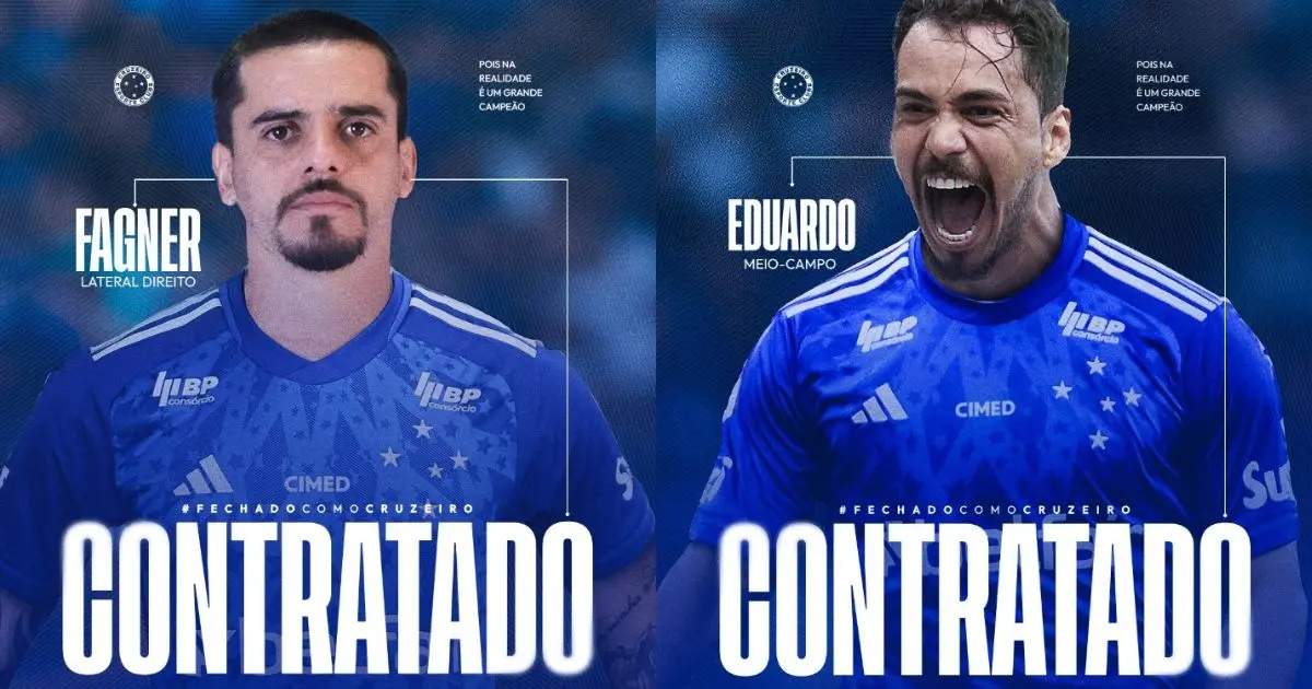 Fagner, de 35 anos, chega ao clube mineiro por empréstimo até o fim de 2025. Segundo apuração da ESPN, o Cruzeiro arcará com 50% do salário do atleta, enquanto o Corinthians será responsável pela outra metade. Já Eduardo, que estava sem contrato após deixar o Botafogo, assinou um vínculo definitivo até dezembro de 2025.