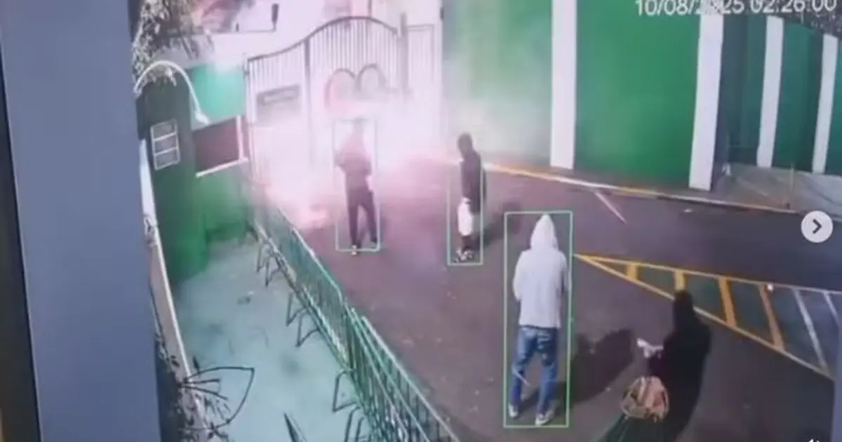 Câmeras de segurança registraram a ação, ocorrida por volta das 2h. Nas imagens, ao menos cinco pessoas, usando capuzes e capacete, se aproximam do local e arremessam os artefatos explosivos. É possível ver chamas e fumaça, além de ouvir o barulho das explosões. Em seguida, o grupo foge. Outro vídeo mostra parte dos envolvidos chegando em um carro escuro, estacionado na Avenida Marques de São Vicente.