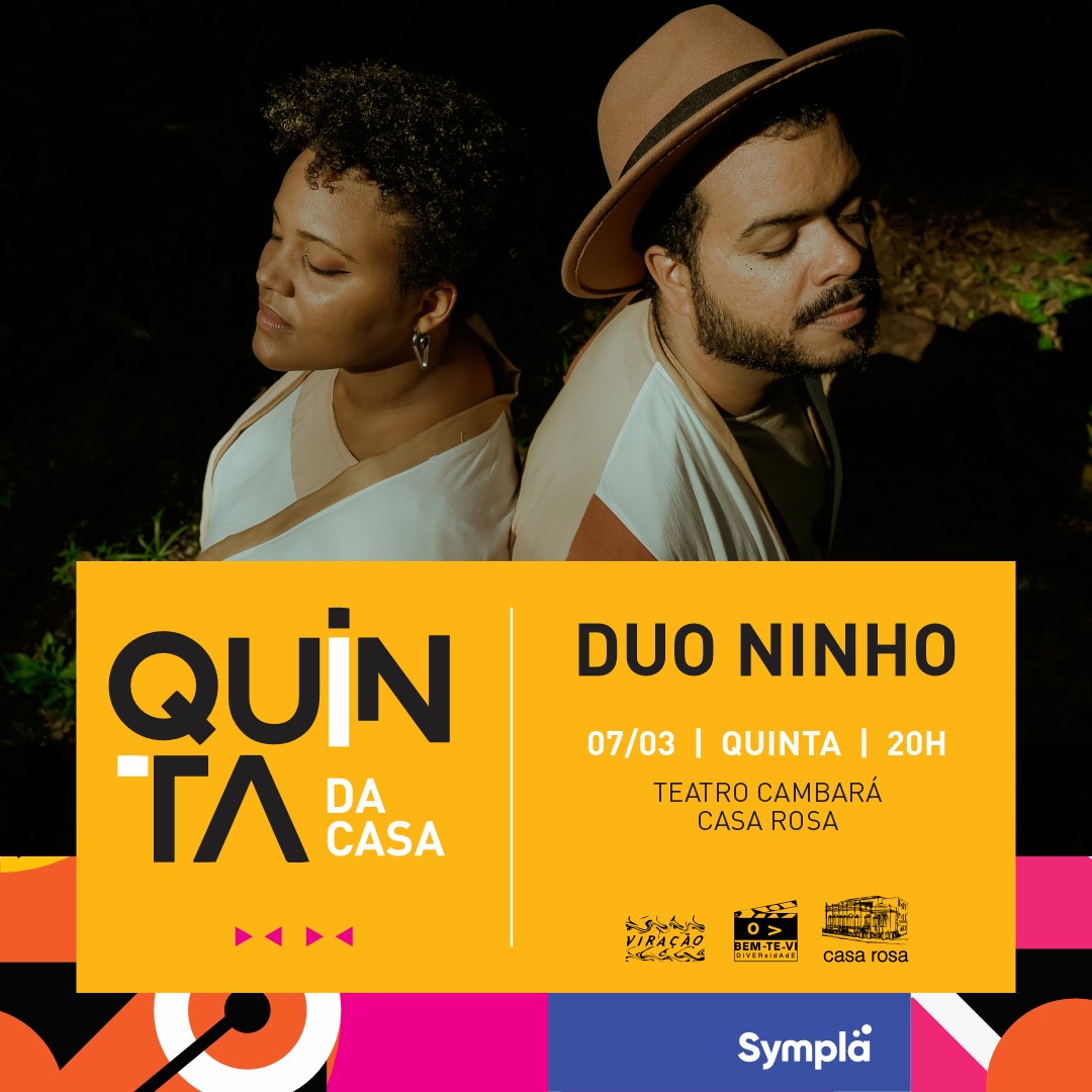 Fruto da parceria entre os artistas Cândido e Talita Felício, o Duo Ninho é atração do projeto “Quinta da Casa” da Casa Rosa no dia 7 de março, às 20h, no Teatro Cambará, sala cênica de intimidade e proximidade com o público. A dupla, que lançou seu primeiro EP em 2023 e celebra agora um ano da realização de seu show de estreia, mistura MPB e ritmos nordestinos e vai apresentar no palco o seu mais novo single, “Jaca Dura”. Ingressos custam R$ 50 (inteira) e R$ 25 (meia) e estão à venda pela plataforma Sympla.