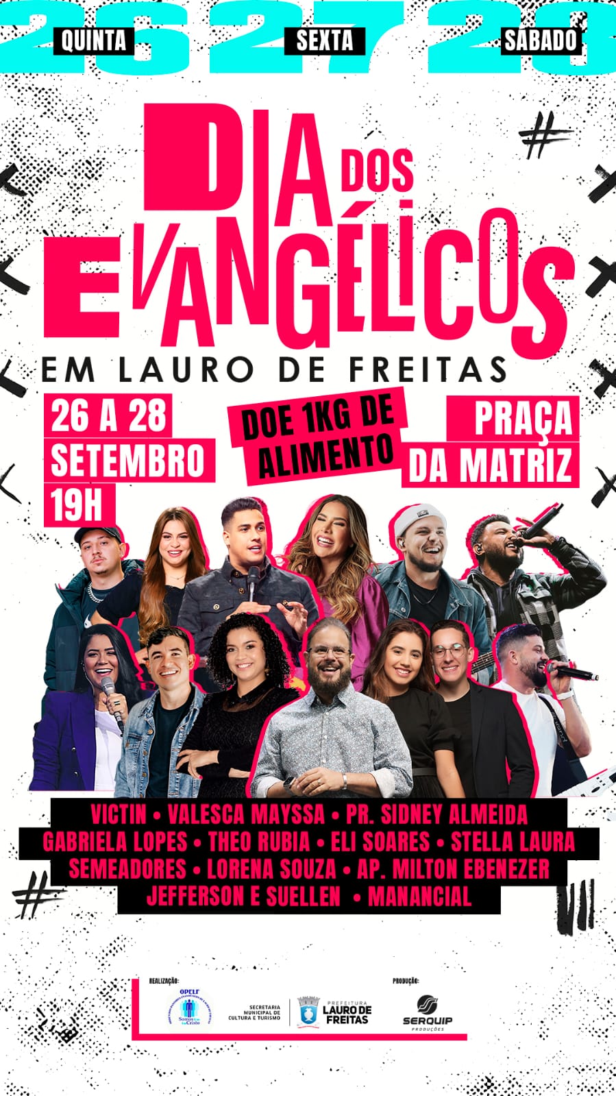 Em celebração ao Dia do Evangélico, o município de Lauro de Freitas será palco de mais uma edição da Semana da Cultura Gospel. Artistas consagrados no meio gospel como Valesca Mayssa, Gabriela Lopes e a banda Manancial farão parte do evento, nos dias 26, 27 e 28 de setembro, na Praça da Matriz, no Centro, das 18h às 03h.