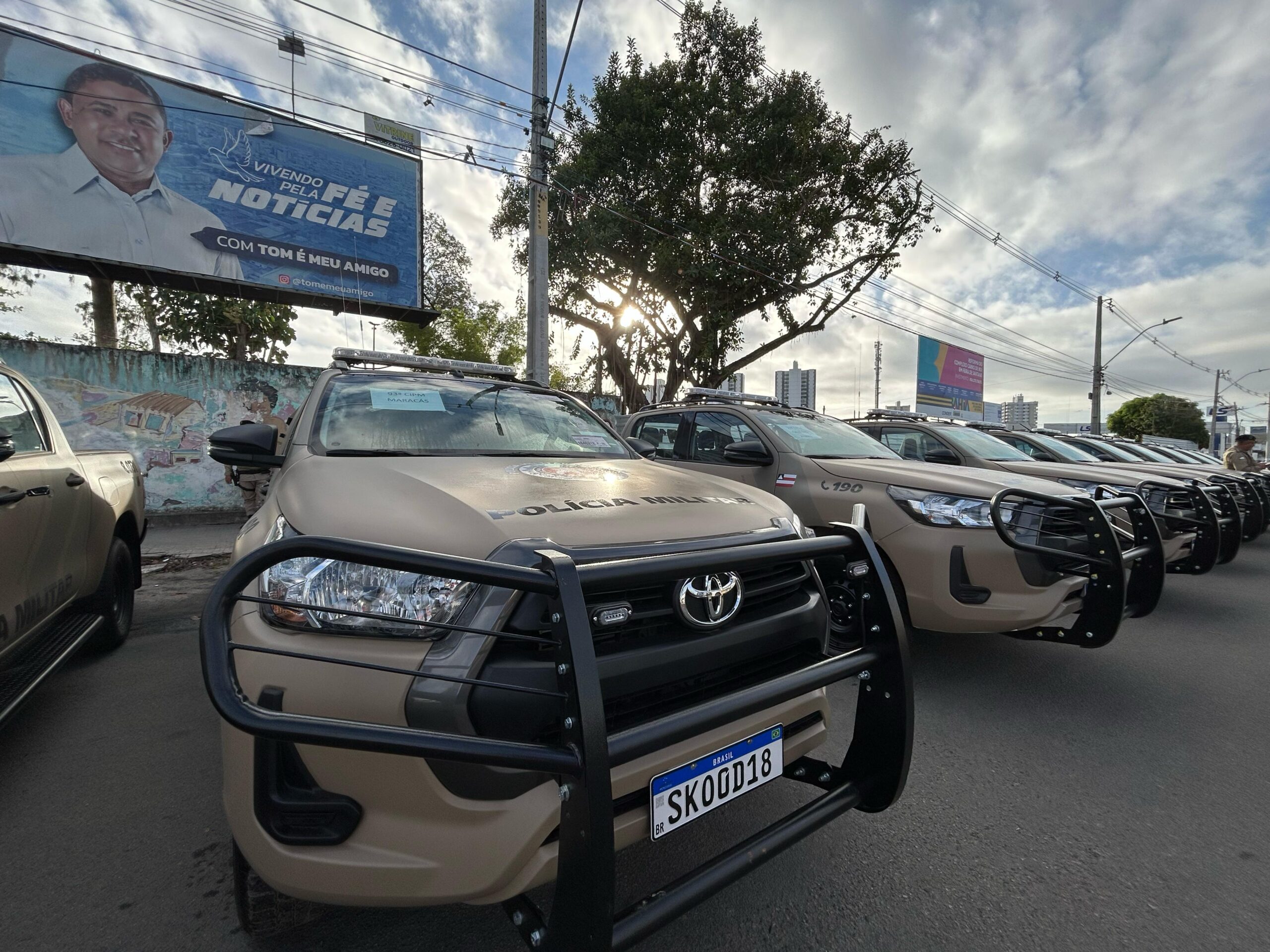 Cinquenta e cinco novas viaturas foram entregues, também na manhã desta sexta, para reforçar o trabalho preventivo e a repressão qualificada promovidos pela PM no combate ao crime organizado. Cerimônia foi realizada na Avenida Presidente Dutra, no bairro dos Capuchinhos.