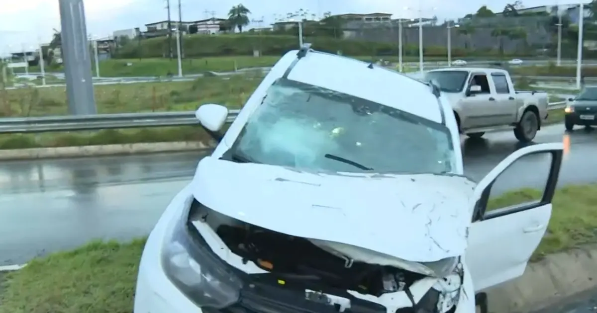 O acidente foi registrado na madrugada desta segunda-feira (5), no sentido BR-324, e com o impacto, o carro chegou a capotar na via.