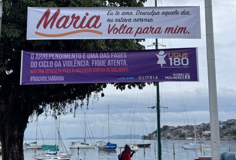 Uma série de faixas com mensagens misteriosas, espalhadas em bairros como Ribeira, Caminho de Areia e Itaigara, tem chamado a atenção dos moradores de Salvador. “Maria, me perdoa. Eu prometo mudar” era o texto que intrigava os passantes e gerava especulações. A iniciativa, que segue até esta sexta-feira (29), faz parte da campanha de conscientização do Instituto Glória, em parceria com a ONU Mulheres e a Prefeitura de Salvador, através da Secretaria Municipal de Políticas para Mulheres, Infância e Juventude (SPMJ).
