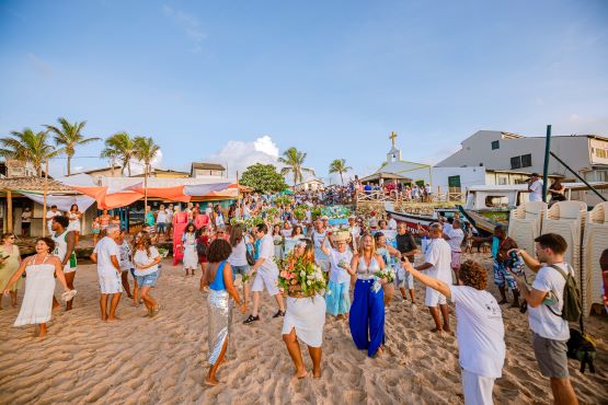 Logo em seguida, por volta das 6h, centenas de pessoas participaram do cortejo cultural animado pela banda de sopro Status, grupos de capoeira e manifestações populares. Depois, a procissão saiu para o ritual religioso de entrega das oferendas. Na ocasião, diversos balaios foram depositados nas embarcações e levados para o alto-mar, na habitual procissão marítima, realizada na Praia do Canal.