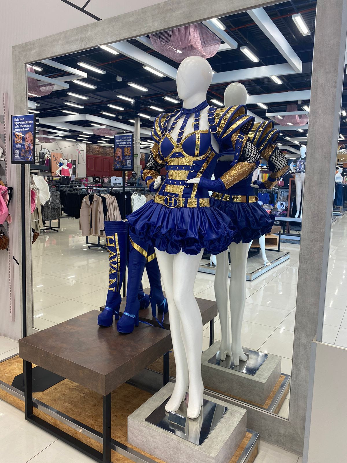 Quem visita a megaloja Havan de Belém, no Pará, neste mês de junho, é surpreendido com a exposição do figurino utilizado pela cantora Joelma nas gravações do comercial de aniversário da varejista. A roupa, juntamente com o par de botas, ganhou um espaço especial dentro da filial.