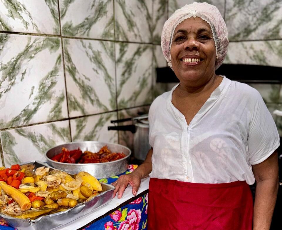 Mas atenção, só vai ter cozido mesmo na quinta. Na sexta tem comida baiana e no sábado feijoada e carne do sol. Minha dica? Vai na quinta para o cozido, volta na sexta para a comida baiana e repete a ida no sábado para a feijoada. Qualquer dúvida você fala com o filho dela, Albert no WhatsApp 71 98891-7071. O restaurante fica na Ladeira da Barroquinha, 25, mas não tem placa na porta. É bom dar uma reservada…