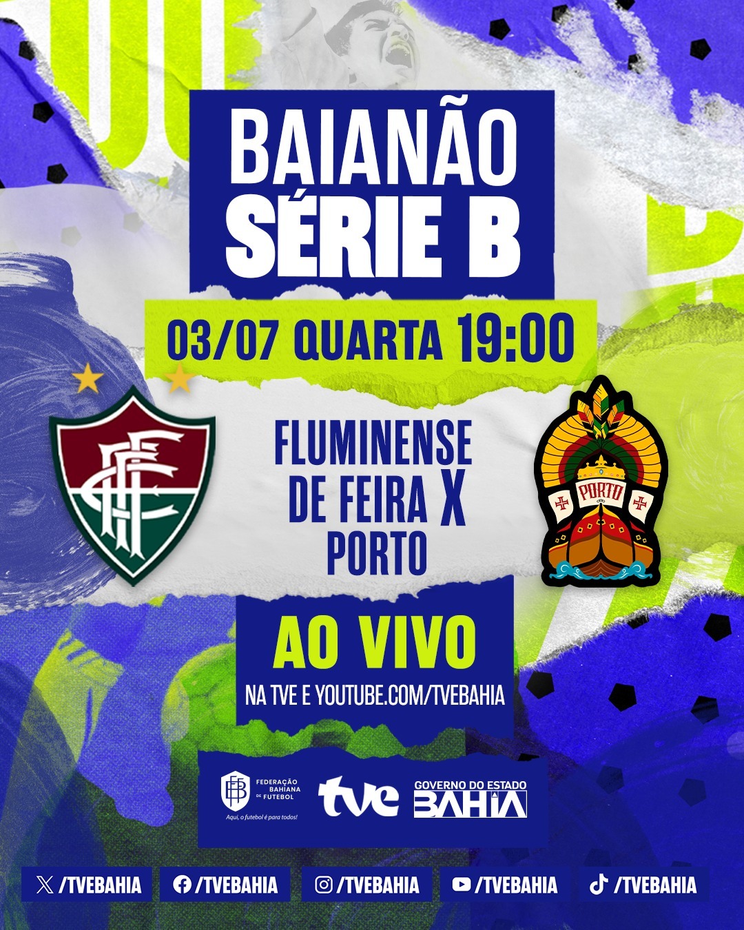 Nesta quarta-feira (03) o Fluminense enfrenta o Porto pela sétima rodada da segunda divisão do Campeonato Baiano. A TVE transmite a disputa a partir das 19h (pré-jogo), direto do estádio de Joia da Princesa, em Feira de Santana. Também é possível assistir à partida pelo canal da TVE no Youtube, no link youtube.com/tvebahia.