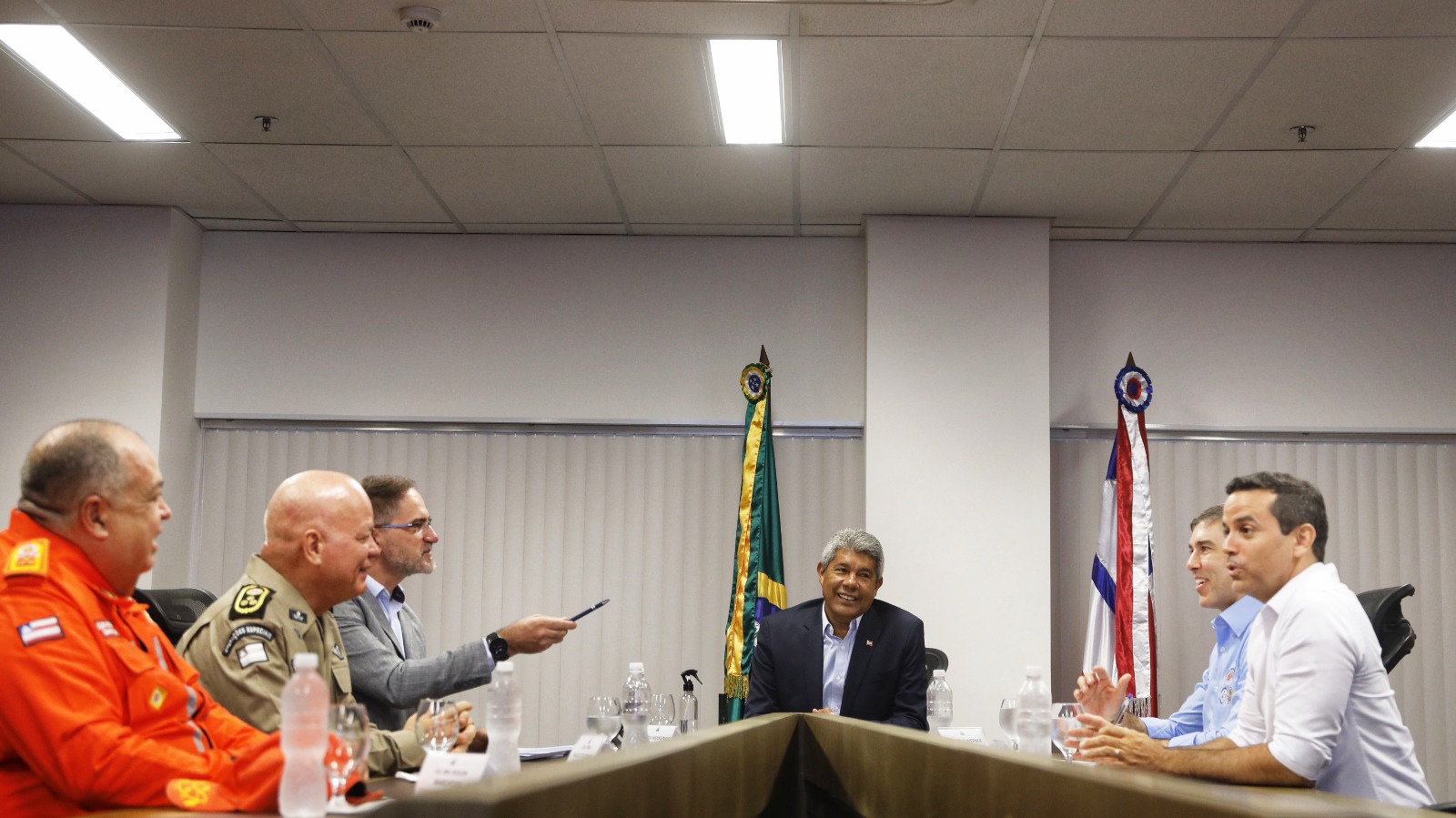 Na manhã desta segunda-feira (30), o governador Jerônimo Rodrigues se reuniu com representantes das forças de segurança da Bahia para apresentar um balanço das ações desenvolvidas em 2024 e traçar metas estratégicas para 2025. O encontro, que teve foco nas particularidades de cada região do estado, contou com a presença do secretário da Segurança Pública, Marcelo Werner; do comandante-geral da Polícia Militar, coronel Paulo Coutinho; e do comandante-geral do Corpo de Bombeiros Militar da Bahia, coronel Adson Marchesini.