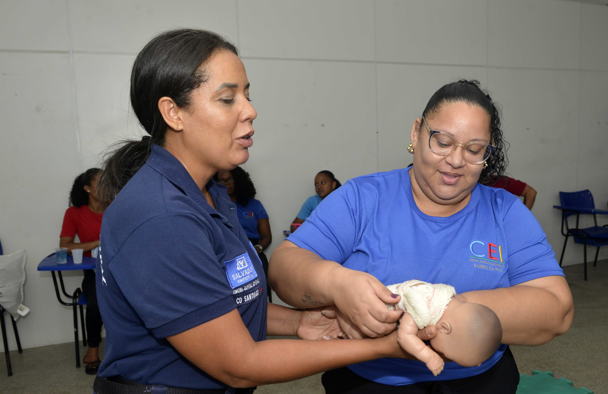 “Essa atividade é fundamental para que saibamos como agir em situações de emergência. Como trabalhamos com crianças pequenas, é comum que elas coloquem algodão, massinha ou até mesmo balas no nariz ou na boca, o que pode causar engasgos. Então, é muito importante que saibamos como lidar com essas situações”, destacou Cristiane.