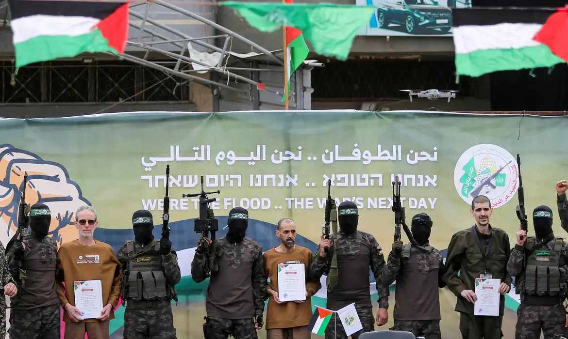O Hamas começou a libertar alguns reféns gradualmente sob o cessar-fogo em vigor desde 19 de janeiro, mas adiou a libertação até segunda ordem, acusando Israel de violar os termos ao continuar os ataques à Faixa de Gaza.