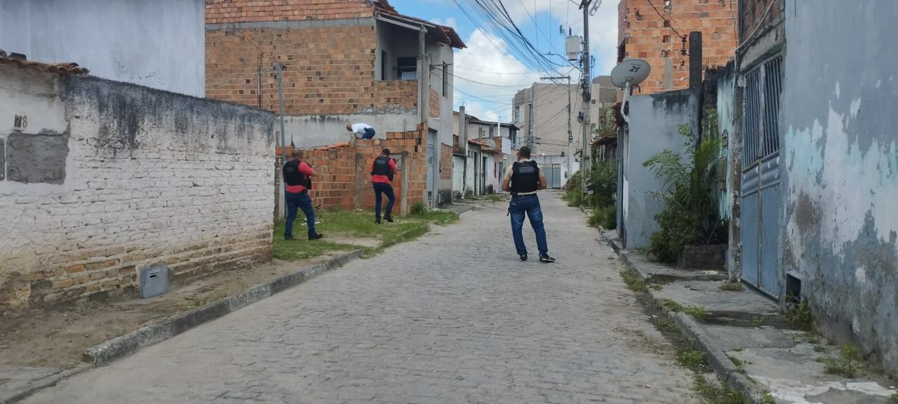 O flagrante se deu durante cumprimento de mandado de busca e apreensão domiciliar para investigar o envolvimento do acusado com o tráfico de drogas e no homicídio de Elcio de Oliveira Silva, ocorrido naquela cidade.
