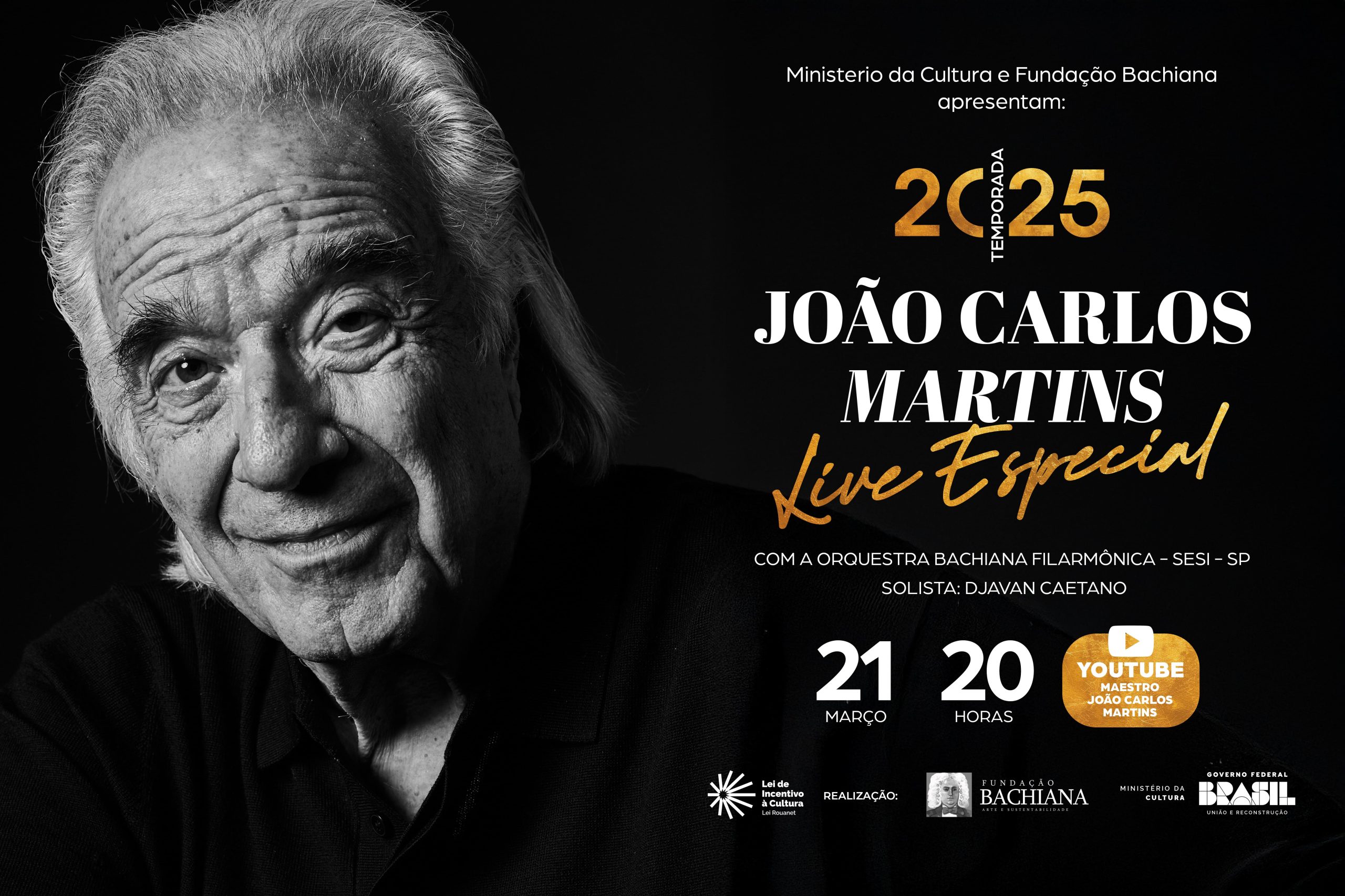 Com sua paixão pela música e conexão única com o público, João Carlos Martins promete mais uma apresentação memorável. A live será transmitida gratuitamente pelo canal oficial do maestro no YouTube, com libras e audiodescrição.