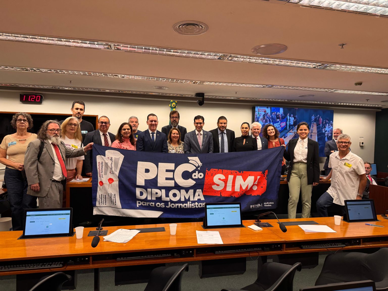 Falando em nome da Fenaj, a presidente Samira de Castro agradeceu a iniciativa da Comissão e falou da realidade dos jornalistas hoje no Brasil, pedindo ao final que os deputados apoiassem a aprovação da PEC do diploma. “A maior homenagem que esta Casa pode dar a essa categoria é a aprovação da Proposta de Emenda Constitucional 206/2012, PEC que restabelece a obrigatoriedade do diploma de nível superior em jornalismo para o exercício da profissão”, declarou.