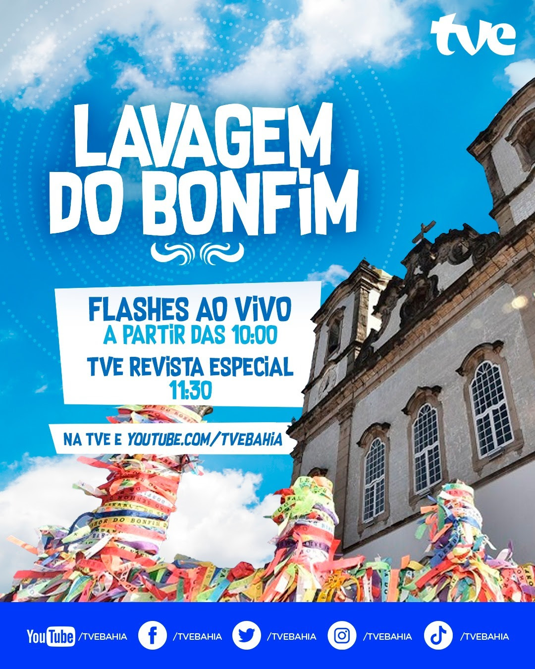Nesta quinta-feira, a partir de 10h, a emissora pública transmite a tradicional festa da Lavagem do Bonfim, uma das mais significativas do povo baiano. Os repórteres Valter Lima e Juraci Santana acompanham o cortejo até a colina sagrada. E o TVE Revista começa mais cedo, às 11h30, com uma edição dedicada ao evento.