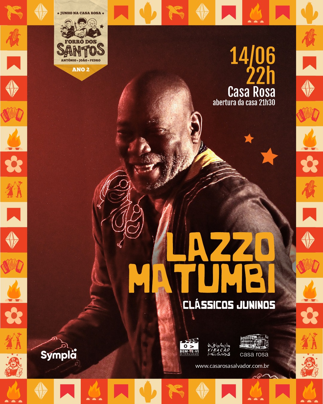No segundo ano de seu “Forró dos Santos”, programação especial do mês de junho, a Casa Rosa apresenta um show inédito de Lazzo Matumbi. Após 46 anos de música, o artista se reinventa mais uma vez e decide homenagear os grandes nomes do nosso cancioneiro junino, que fizeram e seguem fazendo a alegria de milhões de pessoas. O evento será realizado no dia 14 de junho (sábado), às 22h. Ingressos estão à venda pela Sympla.