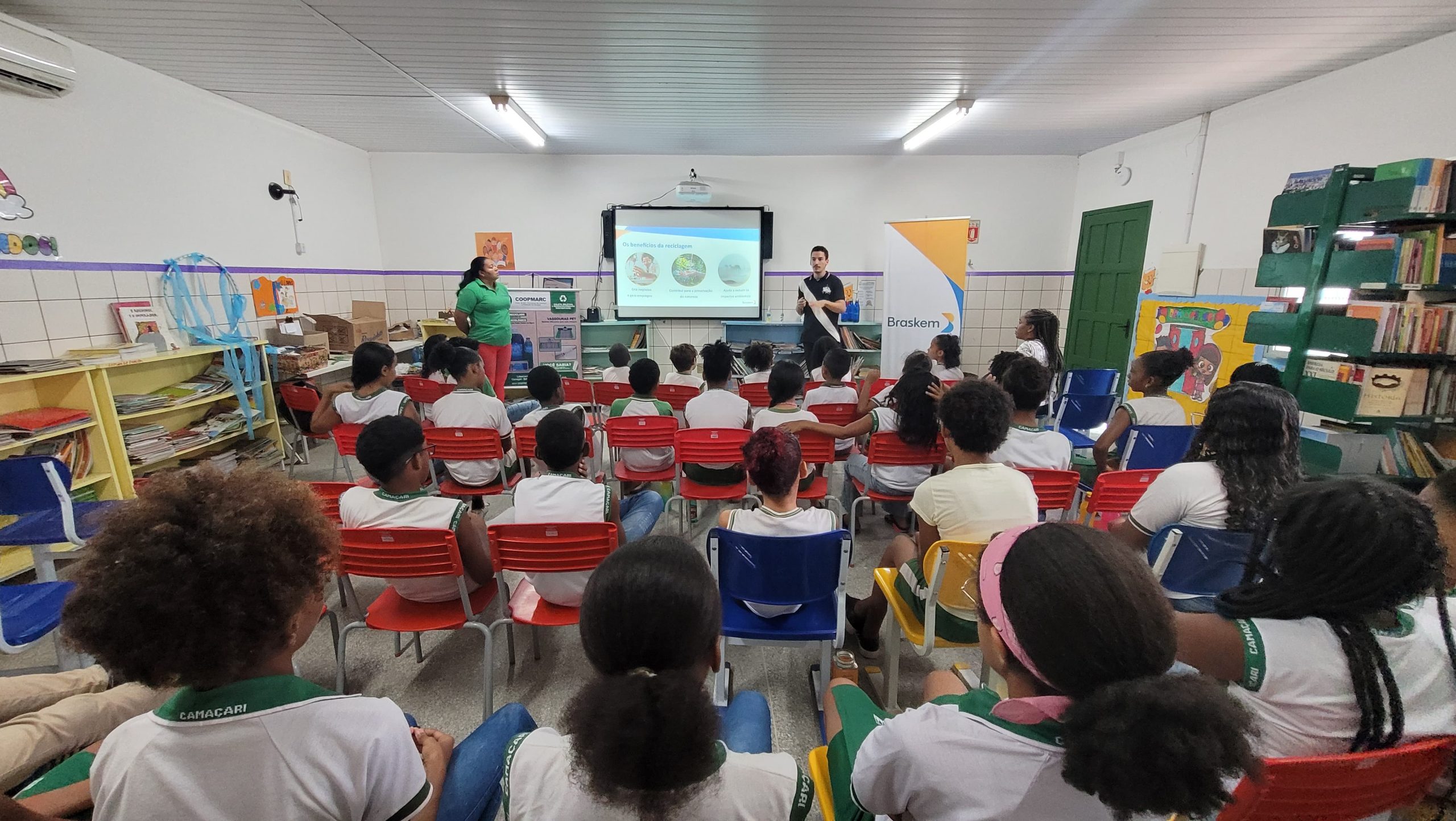 Promover o conceito de economia circular e despertar a consciência em crianças e jovens para a importância da reciclagem. Esses são os objetivos das Oficinas de Educação Ambiental realizadas pela Braskem em escolas públicas e da Rede SESI Bahia de Educação, em Salvador, Camaçari e Candeias. Por meio de palestras e de jogos de perguntas e respostas, são abordados temas como consumo consciente, destinação adequada de resíduos, reciclagem e o papel do plástico em nossas vidas. Em 2024, a iniciativa beneficiou 1.527 estudantes dos ensinos Fundamental e Médio em 32 edições.