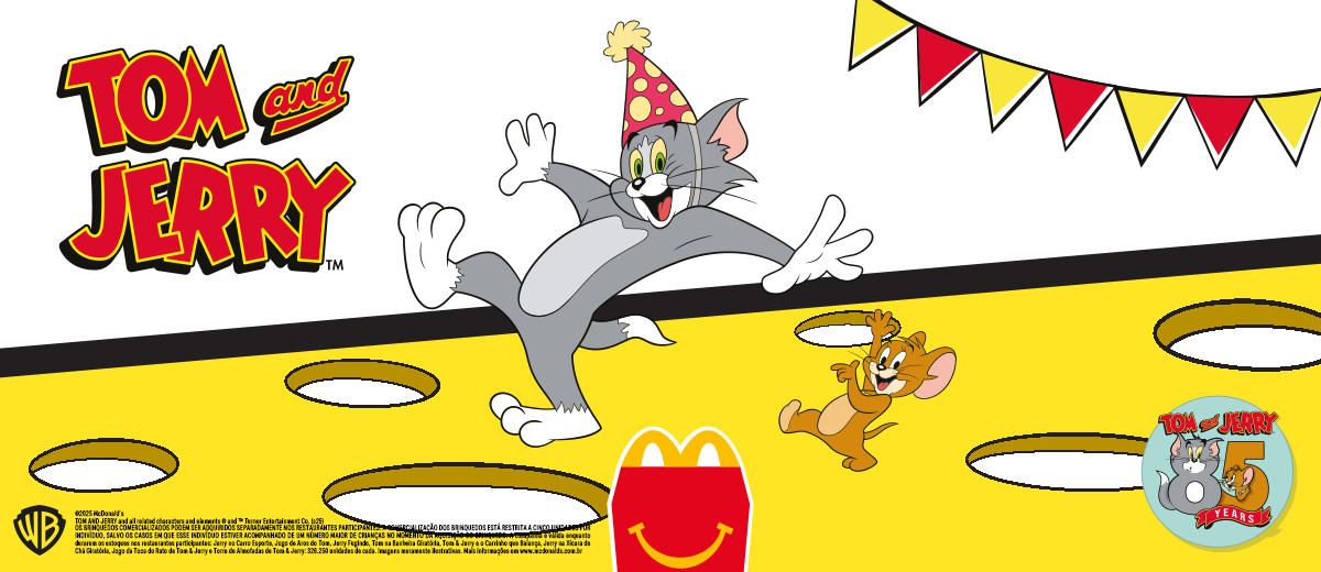 Em comemoração a uma das rivalidades mais icônicas da história da televisão, o McLanche Feliz promete muita diversão em família com miniaturas de Tom & Jerry, personagens que há 85 anos conectam gerações e encantam pessoas de todas as idades!