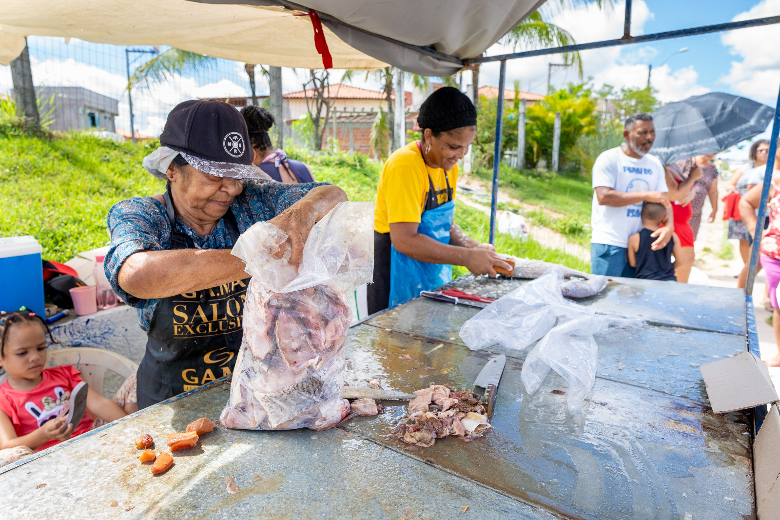 Saber aproveitar as oportunidades é uma das características das pessoas empreendedoras. Com as entregas das Cestas de Páscoa 2025 perto de casa, a trabalhadora de recicláveis, Raiane de Jesus Silva, 33 anos, aproveita os dias para ter uma renda extra, tratando os peixes entregues pela ação da Prefeitura de Camaçari, através da Secretaria de Desenvolvimento Social e Cidadania (Sedes).